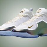 さらに、アイシーブルーのアウトソールはレブロンがスーツジャケットに合わせてはいていたジーンズへのトリビュート。ゴールドのミニスウッシュはパリの表彰台を想起させる。細部に至るまでストーリーが込められた、コレクター必見の1足だ。
